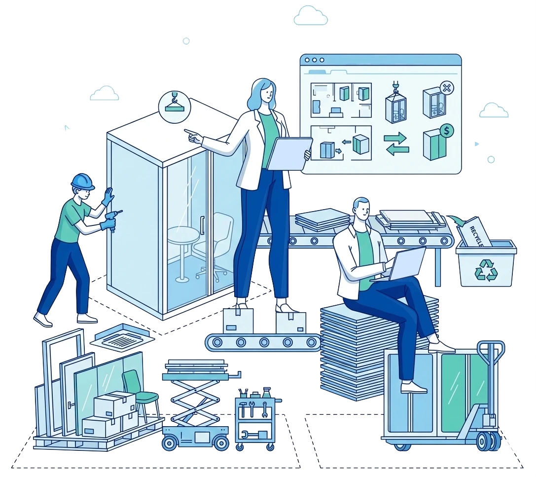 We remove, relocate, or purchase office pods and privacy booths — helping companies stay compliant and recover value.